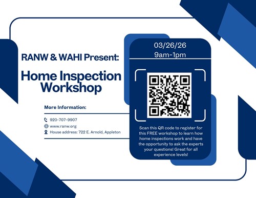 Sign up now for the Spring RANW / WAHI Home Inspection Workshop. We have a few spots available yet for March 26 in Appleton. This is a FREE workshop by the Wisconsin Association of Home Inspectors, please be sure you can attend before signing up as our Home Inspectors generously provide lunch! [RANW / Home Inspector Workshop - 3/26/26 – Fill out form](https://forms.office.com/r/KjYzMDeuf1)